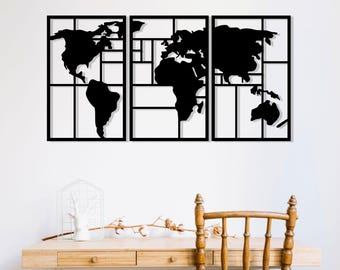 Make a bold, global statement with our Metal World Map Wall Art, designed to bring modern elegance and intellectual charm to your space. Precision laser-cut from high-quality metal, this world map features clean lines, a minimalist design, and a matte finish that complements both professional office settings and stylish home interiors.