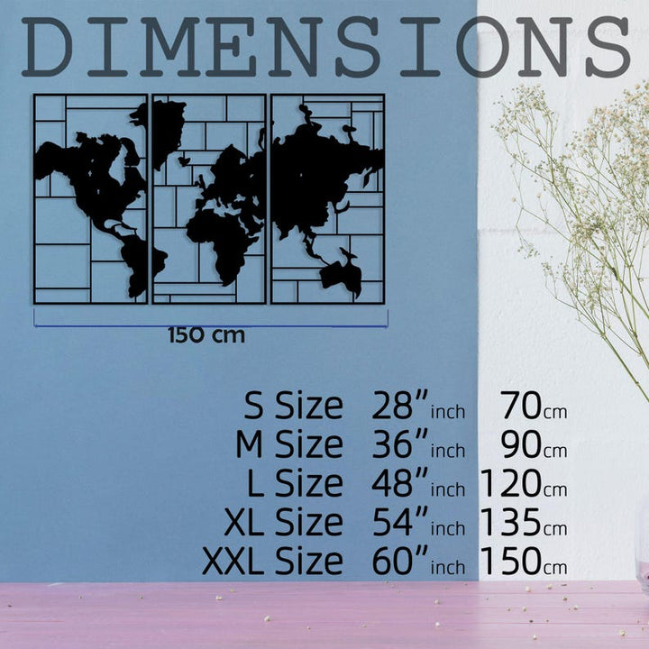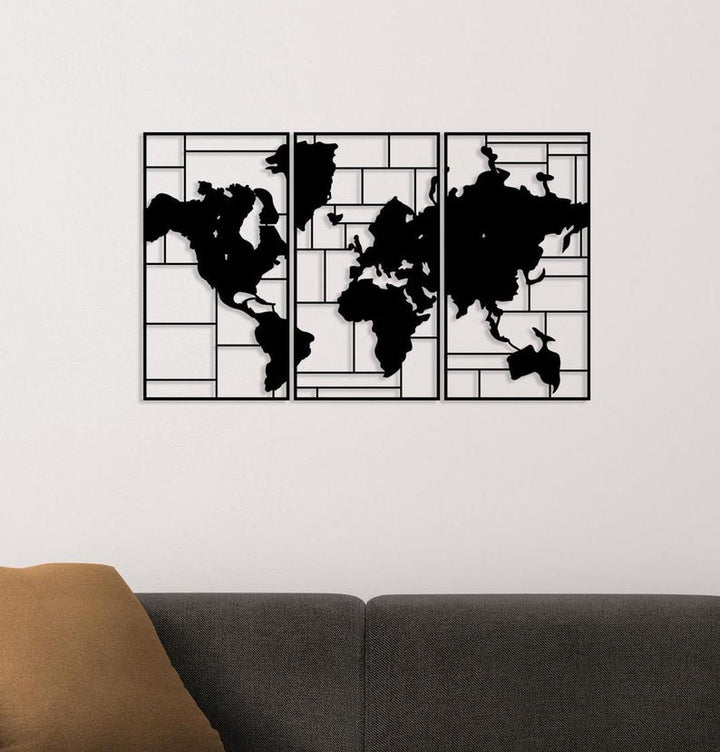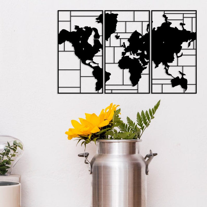 Metal World Map Wall Art – Modern Metal Wall Decor for Office & Living Spaces