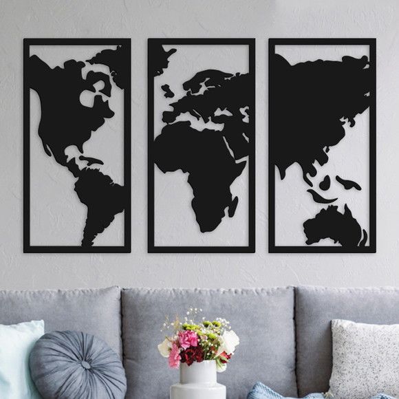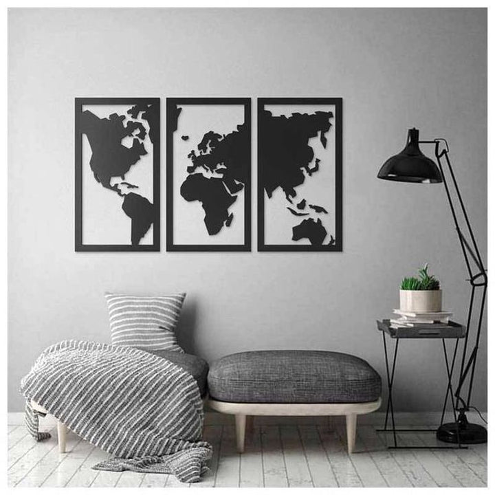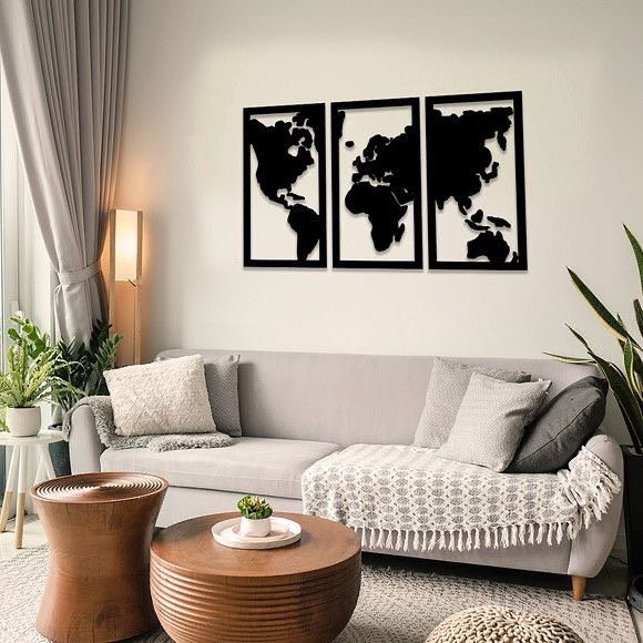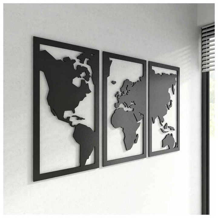 Make a bold global statement with this Three-Piece World Map Metal Wall Art, a striking decorative sculpture that combines artistic craftsmanship with minimalist design. Laser-cut from premium-quality metal and finished with a smooth matte coat, this world map is split into three modular panels, creating a dimensional, gallery-style presentation on your wall.
